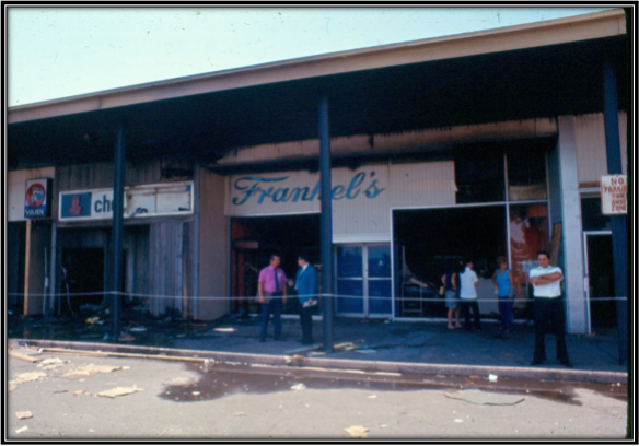 April 8, 1972, a fast-spreading fire gutted four stores and heavily damaged a fifth store at Mid Island Plaza. The first alarm was sounded at 11:35 AM, with mutual aid requested from the Jericho and Westbury fire departments. The fire spread quickly to the cockloft above the stores where it was difficult to combat. Firemen were hampered by heavy smoke that built up in the mall when automatic opening windows failed to open. Firemen were forced to break many of the windows.