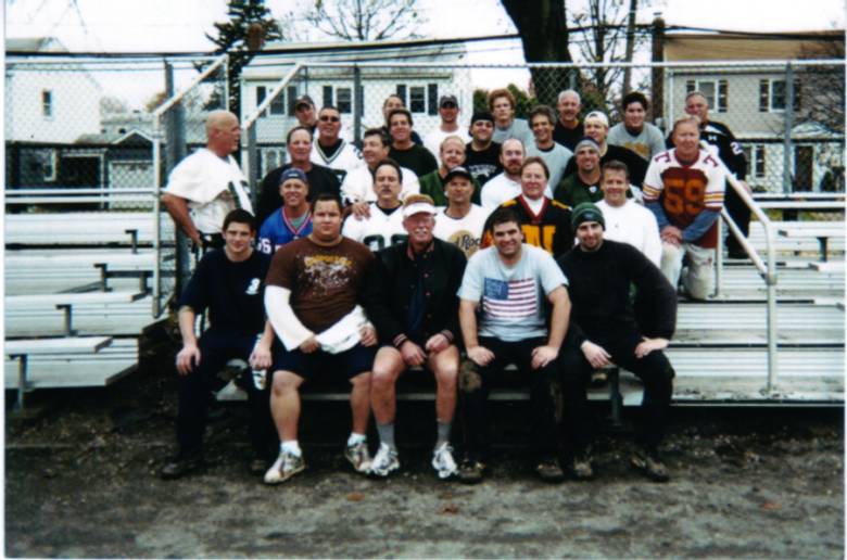 Here is the annual Turkey Bowl team photograph. If anyone is not familiar with the Turkey Bowl, it is a flag football game played each year by former Hicksville High students. The highlight this year was the return of Commissioner Emeritus, Tom Mirhow ('68). He was in attendance strictly as an observer. The game was won by the team led by Commissioner Ken Uhlich ('72). A great tailgate party followed the game. Everyone was in really good spirit as the traveled home to get ready for Thanksgiving dinner.